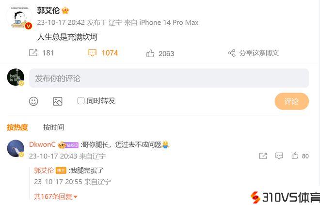他在社交网站先是表示:人生总是充溢坎坷。看到这样的话语,其实有数球迷第一时间想到的就是郭艾伦遭遇伤病。确实郭艾伦最近不时都在备战新赛季,其他事情关于他来说并不是很关键。随后郭艾伦还在评论区上明白表示:我腿完蛋了。这句话出来之后就十分明白了,那就是他又遭遇拉伤了。