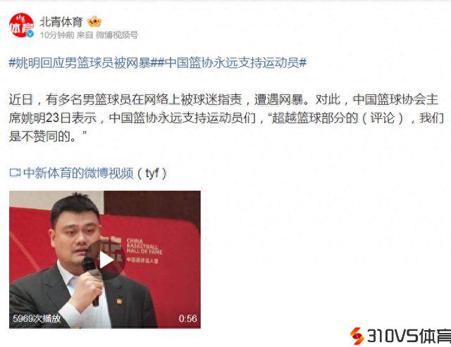 姚明回应男篮球员被网暴