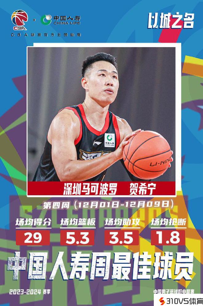 CBA官宣周最佳:贺希宁场均29+6.3记三分4战全胜 罗切斯特中选
