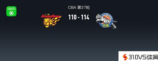 第四节广东马尚-布鲁克斯拿下18分,新疆朱旭航拿下6分,最终广东110-114不敌新疆