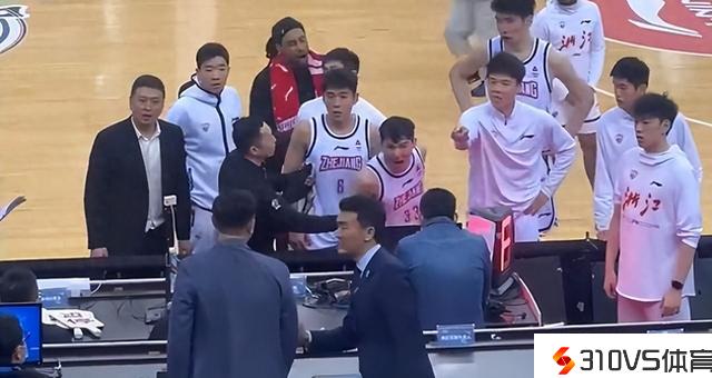 本场竞赛最为具有争议的一幕是竞赛完毕之后,浙江男篮球员并没有第一时间分开球馆,而是少量的球员一同围堵记载台,希望相关的任务人员给出回应,其中,程帅彭更是直接冲到记载台内面,希望能进一步讨要说法,浙江主帅王世龙关于程帅彭的举措颇为不满,指着相关人员拉开程帅彭。