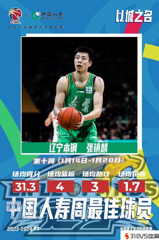 CBA官宣周最佳:张镇麟单场47+9三分中选 穆迪战广东35+三双