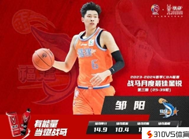 场均14.9分10.4板!CBA官方:邹阳取得第3期月度最佳星锐球员
