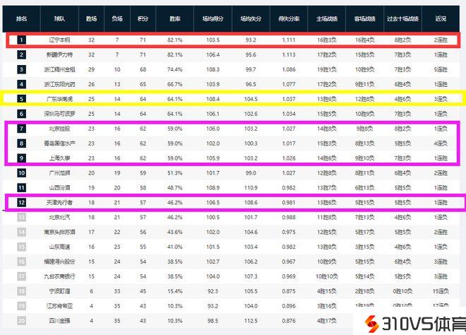 CBA最新排名出炉!辽篮傲视群雄,广东跌出四强,四队强势反弹