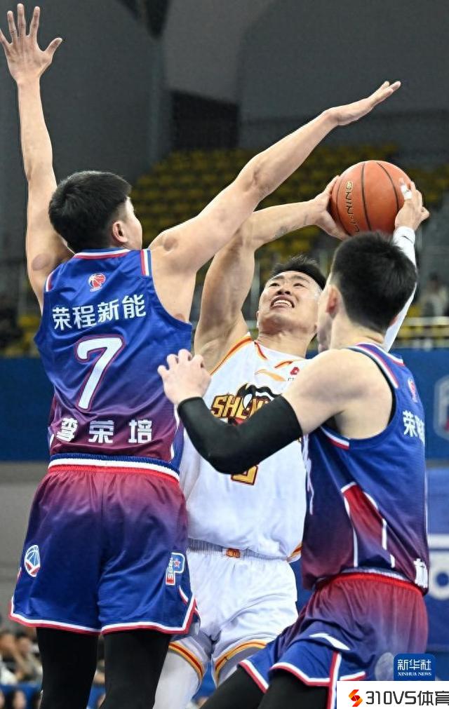 3月8日,深圳马可波罗队球员贺希宁(中)在竞赛中投篮。新华社记者 赵子硕 摄