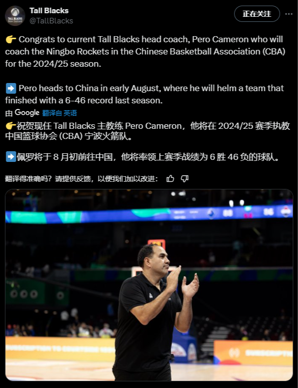 🌟新西兰男篮官宣:主教练卡梅隆将担任宁波男篮主教练