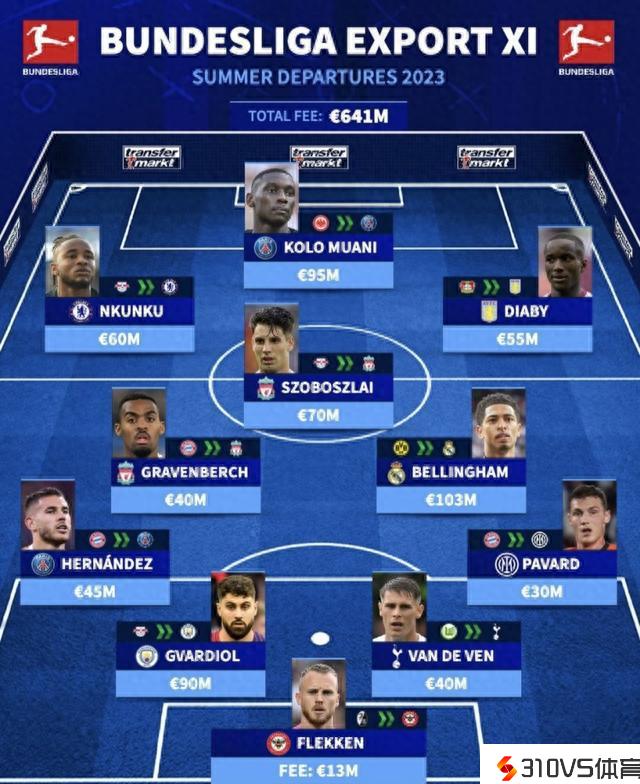 德甲今夏转出11人阵:贝林厄姆领衔,总费用高达6.41亿欧