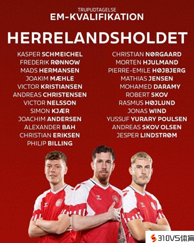 丹麦队官方发布了接上去欧预赛的大名单,霍伊伦、埃里克森、克亚尔、霍伊别尔等诸多名将在列。丹麦队将在10月15日和10月18日区分对阵哈萨克斯坦和圣马力诺。