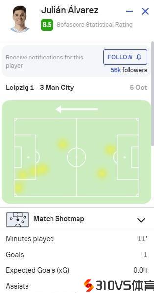 阿尔瓦雷斯本场对阵莱比锡数据:传射建功,SofaScore评分8.5