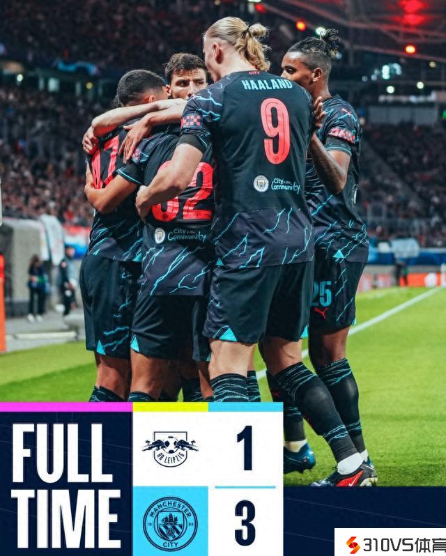 莱比锡vs曼城数据:射门3-18,莱比锡全场仅1次射正