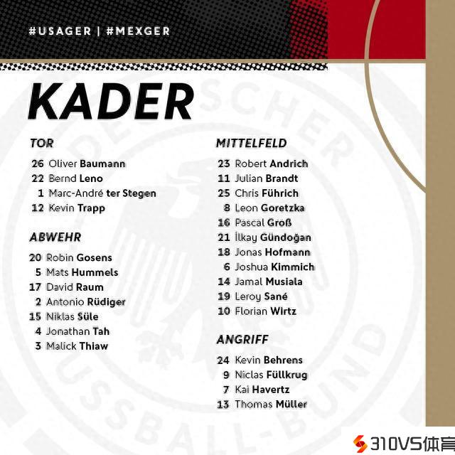 纳格尔斯曼首期德国队名单:胡梅尔斯回归,穆勒领衔