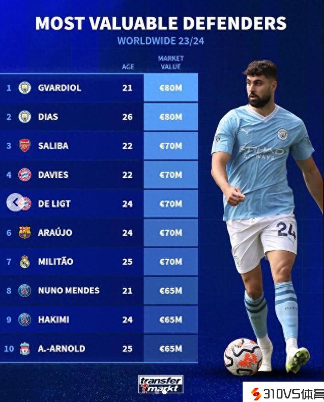 “转会市场”最新后卫身价排名(身价相反的,年龄小的排名靠前):