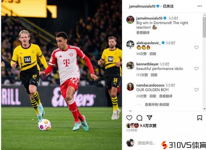 穆西亚拉社媒:客战多特取得重要成功,我们做出正确的反响