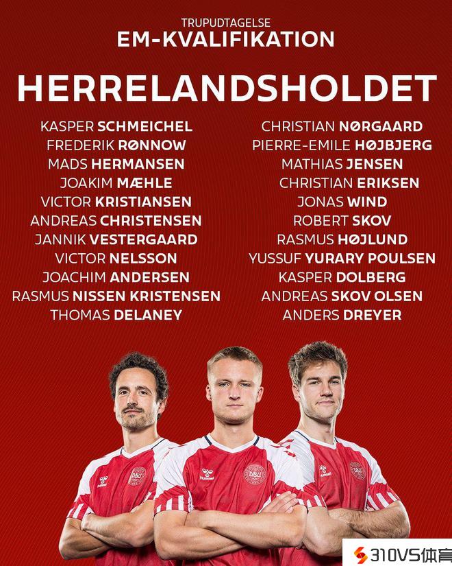 丹麦国度队发布新一期大名单,埃里克森领衔,舒梅切尔、霍伊伦、霍伊别尔等球员在列。