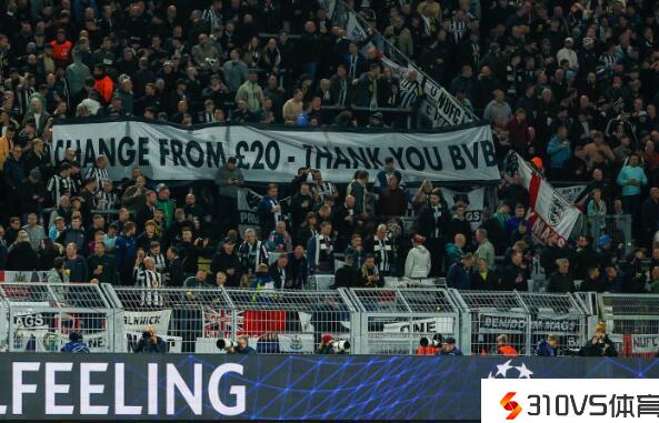 球票只需20镑,纽卡球迷举横幅感谢多特主场的廉价票价