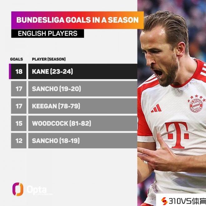 凯恩逾越桑乔,成为德甲历史单赛季进球最多的英格兰球员