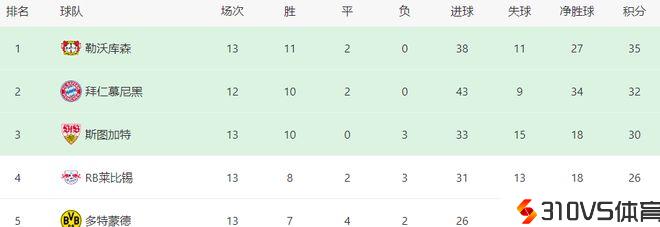 前面12轮事先,拜仁10胜2平,未尝败绩,目前积32分,在少赛一轮的状况下落后榜首勒沃库森3分,暂时排在德甲积分榜的第2位。近期,拜仁的形状十分不错,算上上一轮1:0小胜科隆,德甲南大王曾经豪取德甲6连胜。