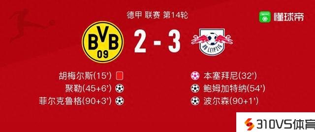 北京时间12月10日多特蒙德vsRB莱比锡,劳姆失掉全场最高的8.4分,胡梅尔斯失掉全场最低的3.0分