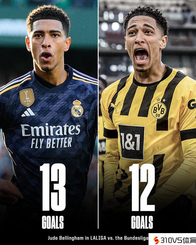贝林厄姆15场西甲攻入13球,而贝林厄姆此前效能多特三个赛季92场德甲攻入12球。