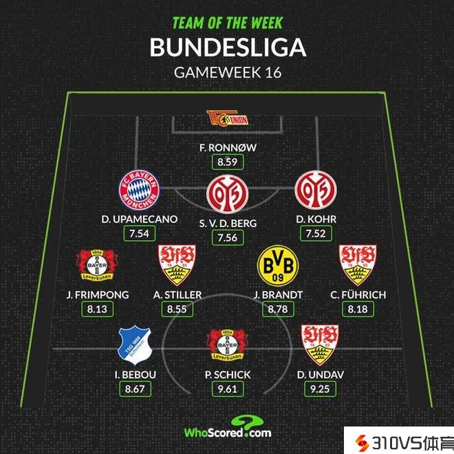 WhoScored德甲本轮最佳阵:希克帽子戏法领衔,拜仁于帕1人中选