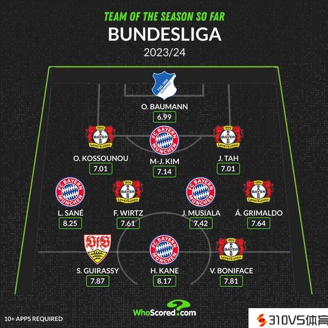 德甲截止目前最佳阵:凯恩、金玟哉在列,药厂5将,多特无人中选