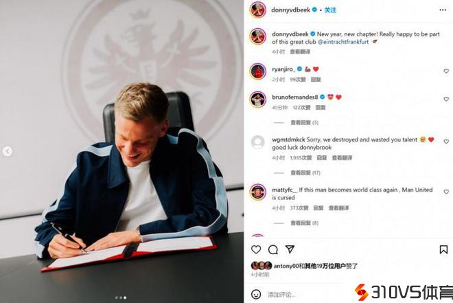 租借加盟,范德贝克社媒晒与法兰克福签约照:新的一年,新的篇章