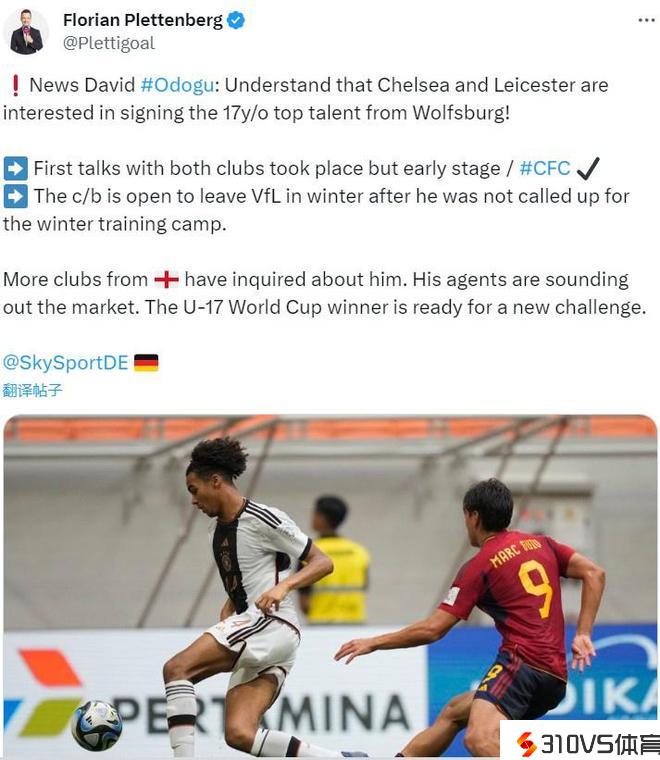 德天空记者:切尔西等英格兰多队有意沃尔夫斯堡新星奥多古