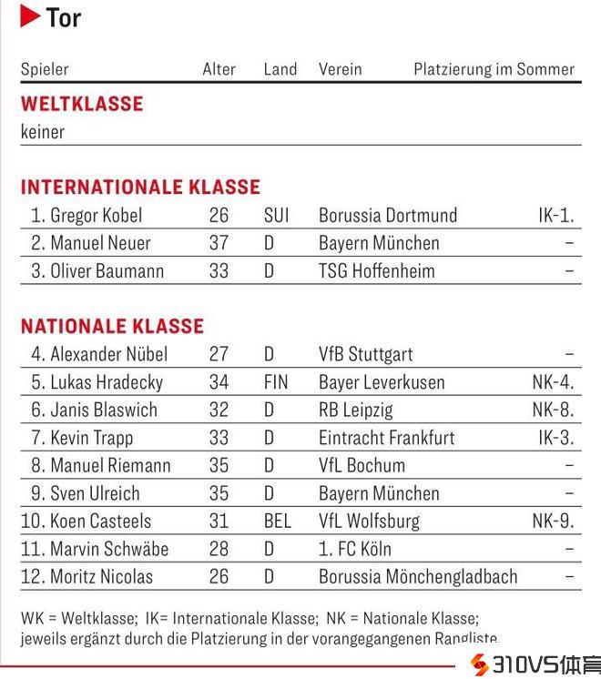 踢球者德甲半程门将评级:科贝尔和诺伊尔前二,领衔洲际级