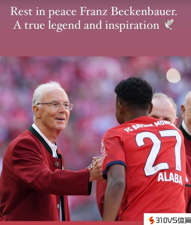 阿拉巴写道:“安息吧弗兰茨-贝肯鲍尔,您是真正的传奇,是我的灵感源泉。”