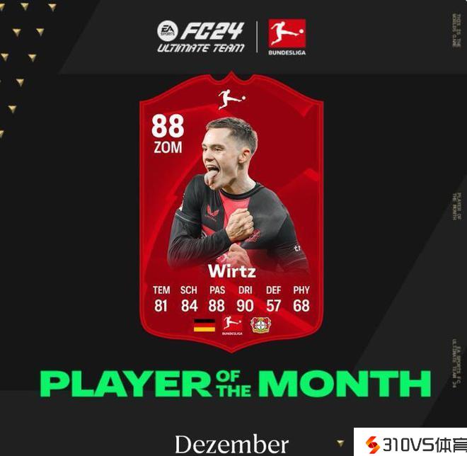 力压凯恩,勒沃库森新星维尔茨取得德甲12月最佳球员