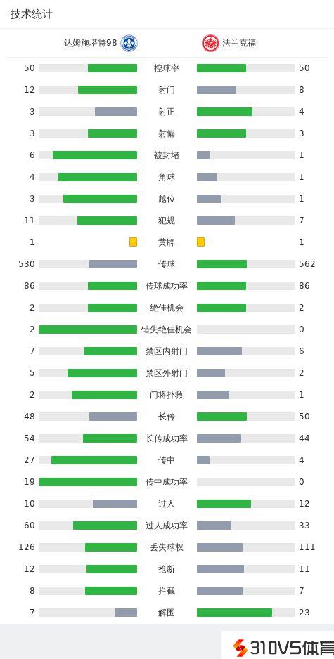 达姆施塔特98首发:32-法比安-霍兰, 1-舒恩, 26-巴德尔, 27-斯卡克, 17-尤斯特范, 24-普法伊费尔, 14-克拉雷, 28-弗兰季奇, 15-纽伦贝格, 5-马格利卡, 38-里德尔