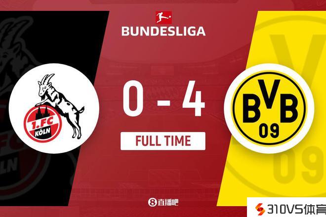 全场竞赛完毕,多特4-0击败科隆。