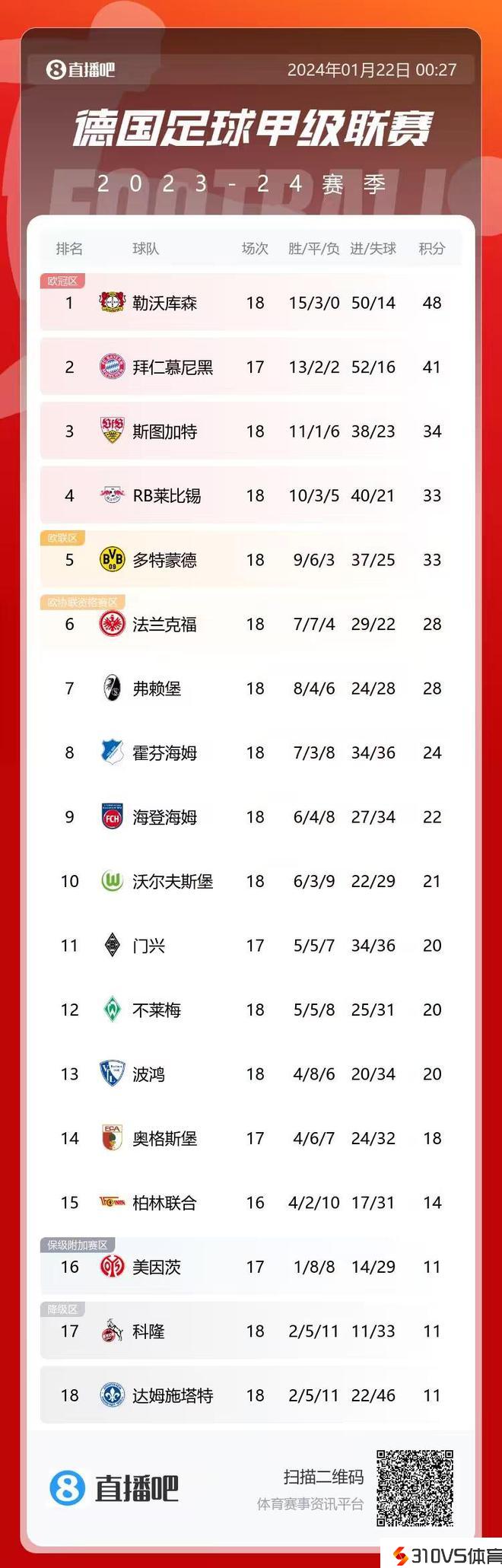 拜仁距榜首7分!德甲积分榜:拜仁爆冷仍居第2,药厂7分优势领跑