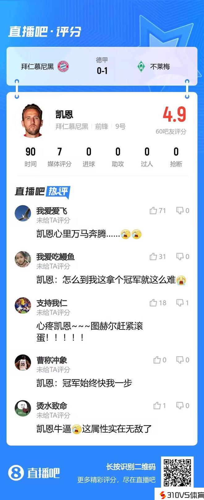 心疼凯恩!吧友热评:凯恩拿个冠军就这么难?心里万马奔腾
