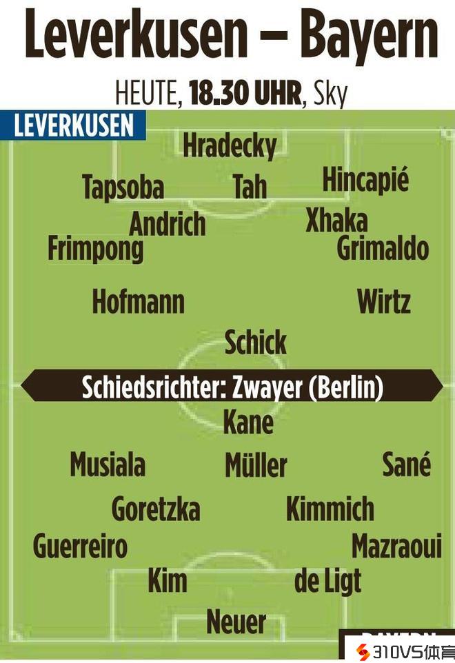 图片报预测拜仁vs药厂首发:凯恩、穆勒pk希克、维尔茨