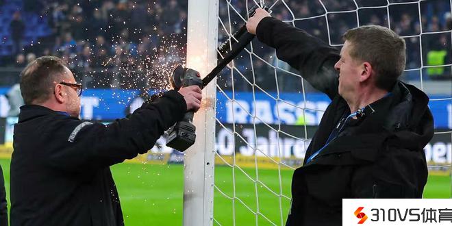 德乙联赛汉堡对阵汉诺威的竞赛中,球门被支持者锁定后,沃尔克斯公园任务人员用角磨机打破了门锁。