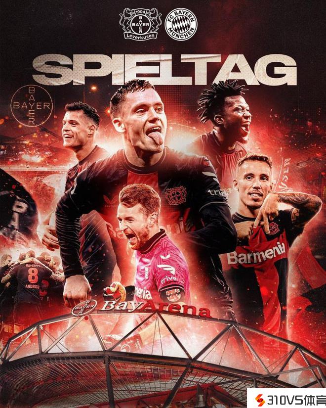 榜首大战!⚔勒沃库森晒海报预热战拜仁:扎卡出镜,维尔茨C位