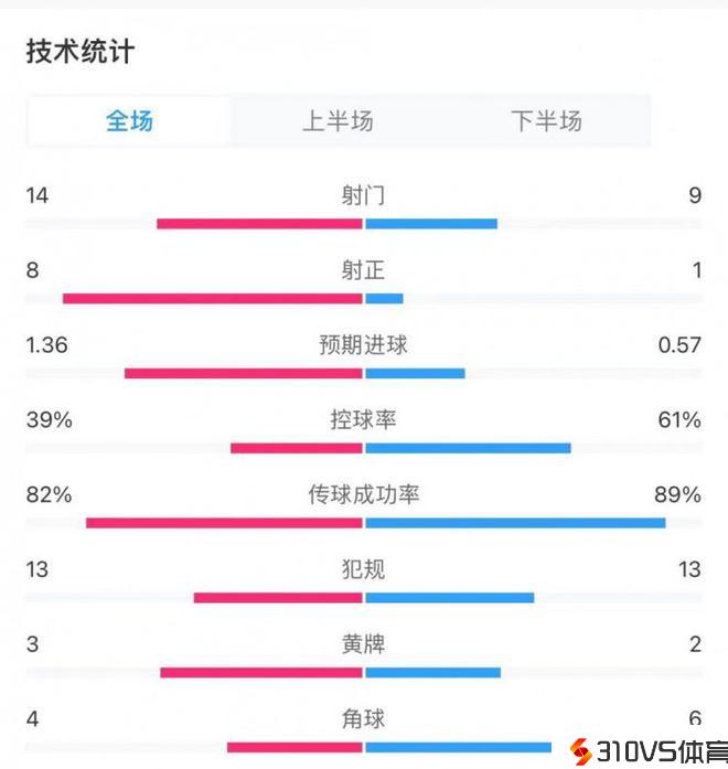 药厂3-0拜仁全场数据:射门14-9,射正8-1,中框2-0