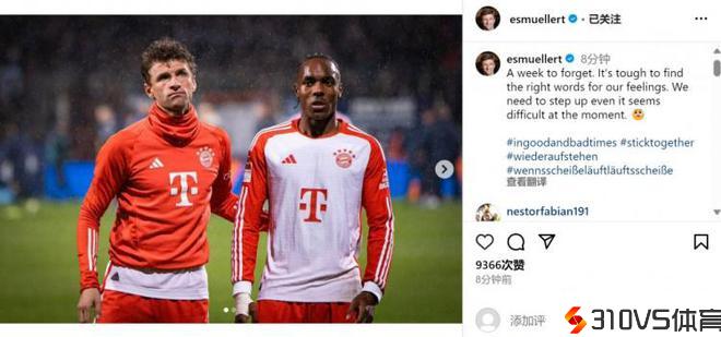 穆勒本场首收回战,赛后他也在团体社媒发文谈到球队最近蹩脚表现,他写道:“这是不想再记起的一周,很难找到适宜的词来描画我们如今的感受。即使此时此刻看起来十分困难,但是我们需求自告奋勇。”