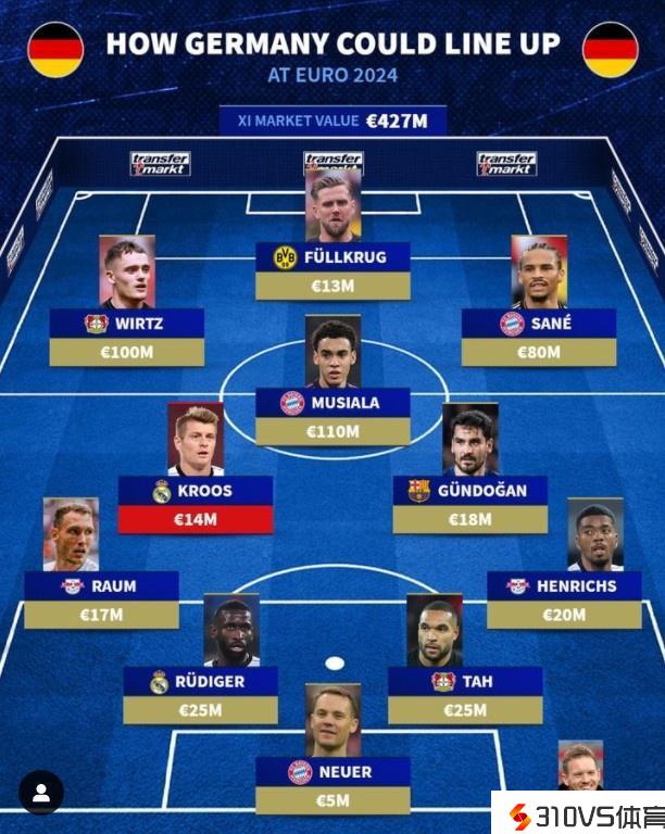德转预测德国队欧洲杯首发:克罗斯、京多安、穆西亚拉伙伴中场