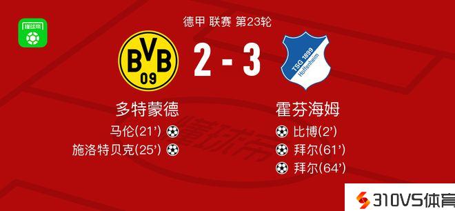 北京时间2月26日多特蒙德vs霍芬海姆,罗伊斯失掉全场最高的8.5分,贝克尔失掉全场最低的6.1分