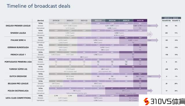 欧足联发布转播分红:英超领跑优势继续扩展,意德法跌入下降区间