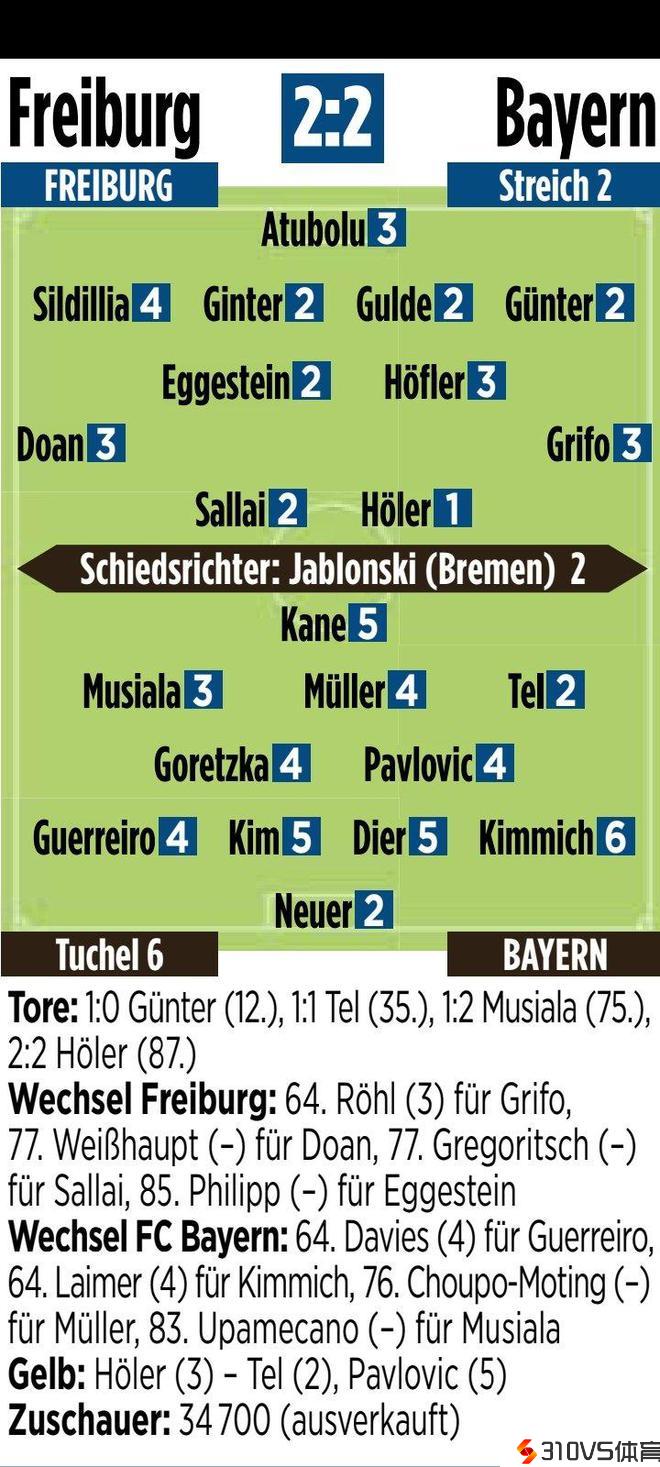 弗赖堡vs拜仁图片报评分