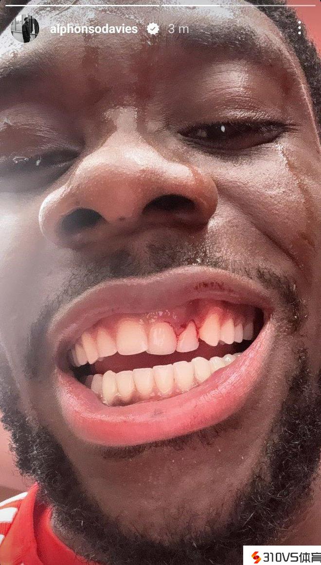 赛后,阿方索也在社交媒体上晒出了自己仍在渗血的牙齿,门牙曾经被补全了。