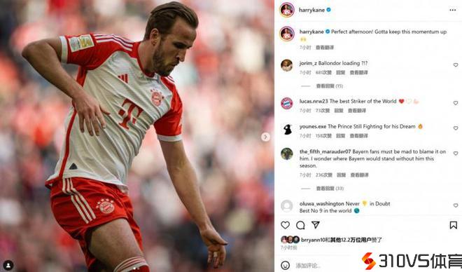 3球1助攻!凯恩社媒晒照:完美的下午,让我们延续这样的形状!