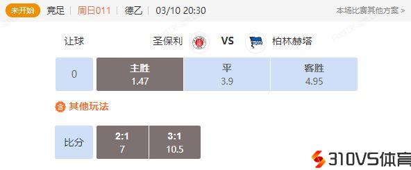 竞足 周日011德乙圣保利VS柏林赫塔