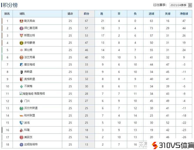 德甲最新积分榜:勒沃库森完胜10分领跑,格策传射法兰克福逆转!