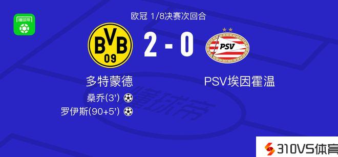 多特蒙德vsPSV埃因霍温球员评分:格雷戈-科贝尔9.0分,巴巴迪4.5分