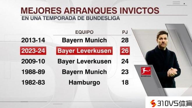 德甲赛季残局不败榜:13-14拜仁28场居首,本赛季药厂26场次席