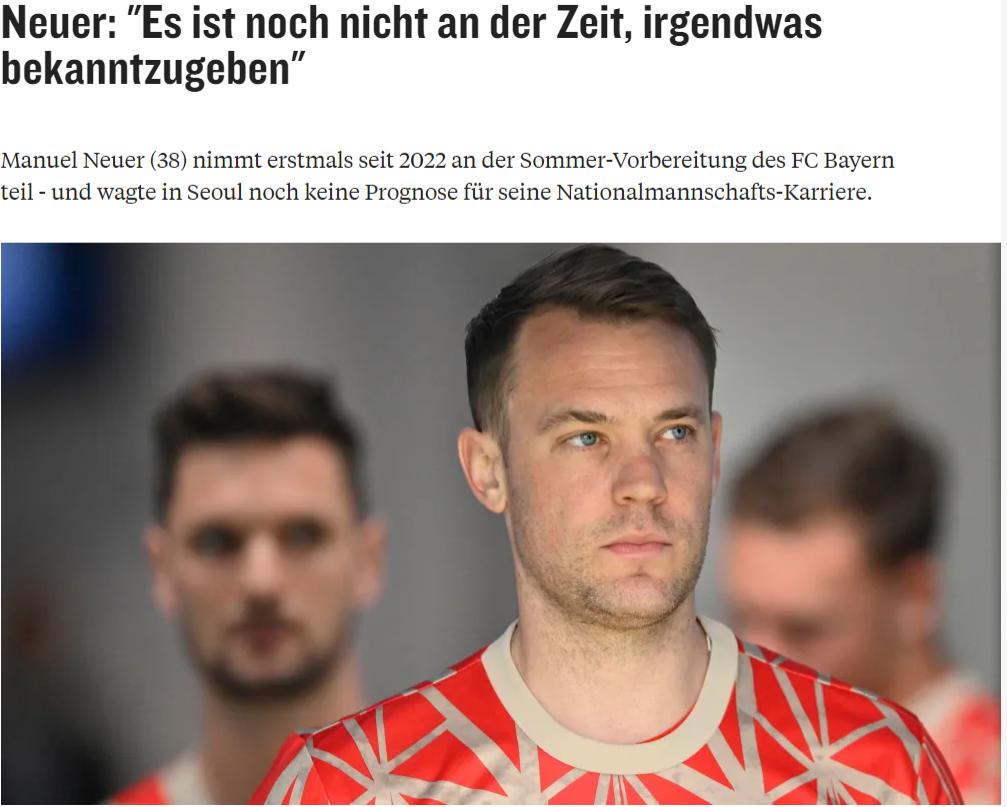 跟随拜仁前往韩国备战新赛季的诺伊尔,在接受采访时表示,自己目前不想去讨论退出国家队、退役的话题,对于拜仁新帅孔帕尼,诺伊尔则表示,他的执教理念已经赢得拜仁上下的认可。
